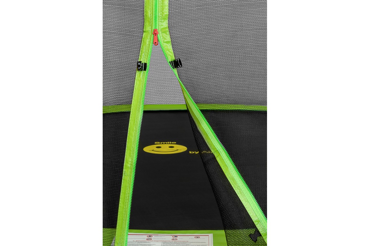 • Специально разработанная конструкция легкого входа и выхода с батута. Замок-молния позволит Вам с легкостью попасть на батут. Дополнительная защита с внешней стороны от открывания, не позволит ребенку самостоятельно покинуть батут без помощи взрослого. Что исключает опасность получения травмы при падении с батута.