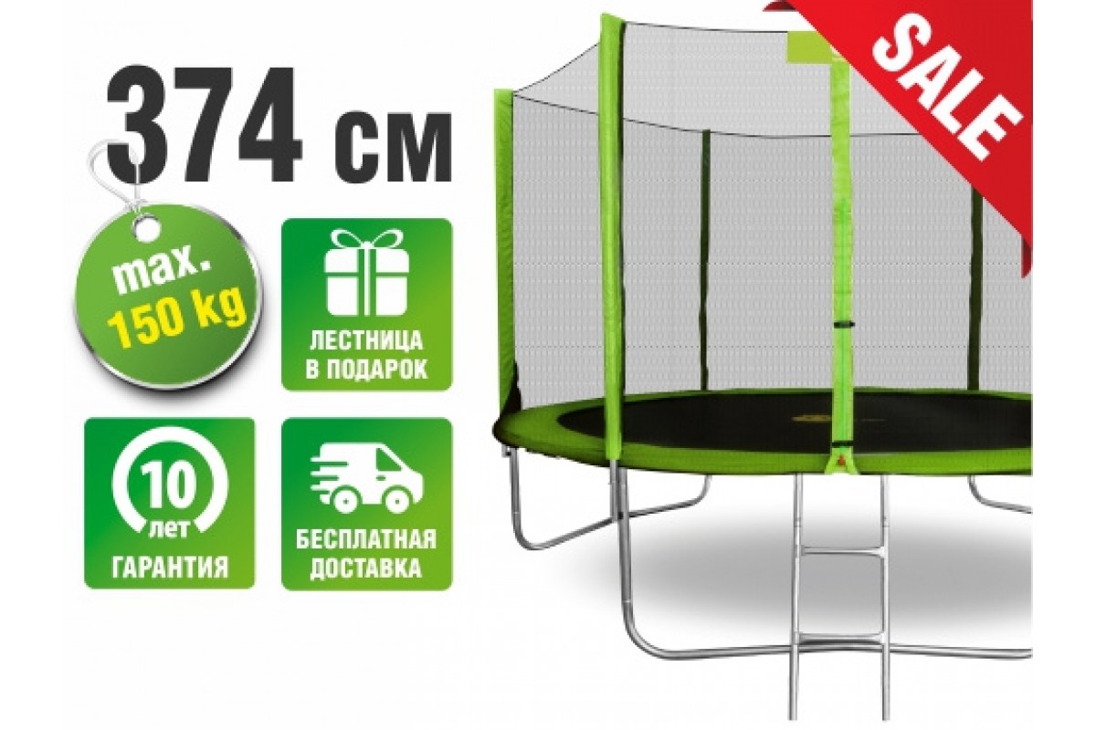 Батут с сеткой и лестницей Smile STG-374 12ft (374 см.) имеет улучшенную конструкцию рамы и современный дизайн. В конструкции данного батута все продумано до мелочей. Инженеры и дизайнеры ALPIN постарались найти наилучшее решение для Вас. Надежность конструкции обеспечивается прочной рамой с полимерным двусторонним покрытием, нанесенным методом холодной гальванизации.