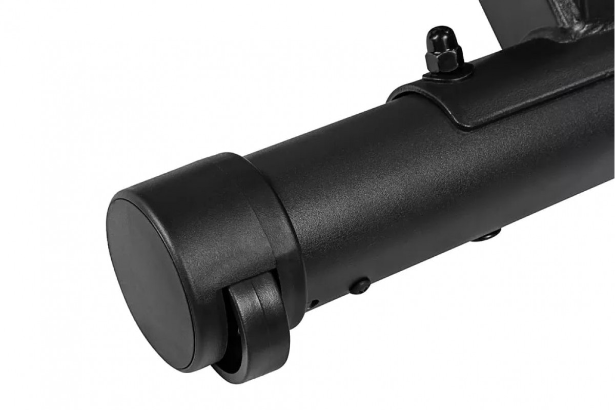 За показатели пульса отвечают вмонтированные в рукоятки сенсорные датчики пульса. Велотренажер удобно перемещать благодаря двум транспортировочным роликам. Устойчивое положение ноги обеспечивается благодаря широкой педали с не скользящей поверхностью.