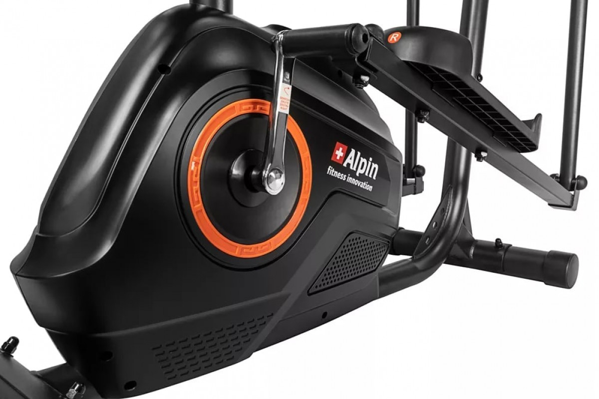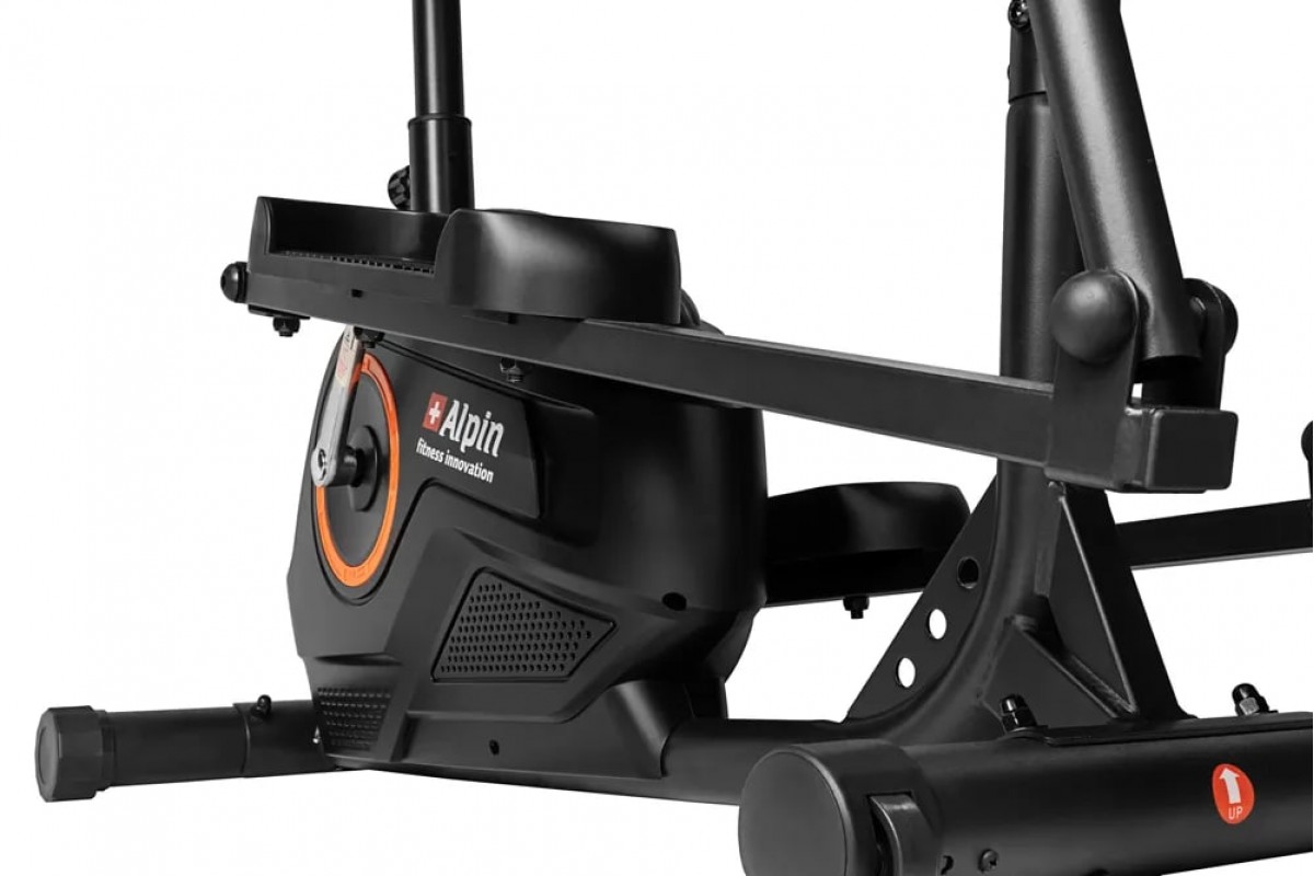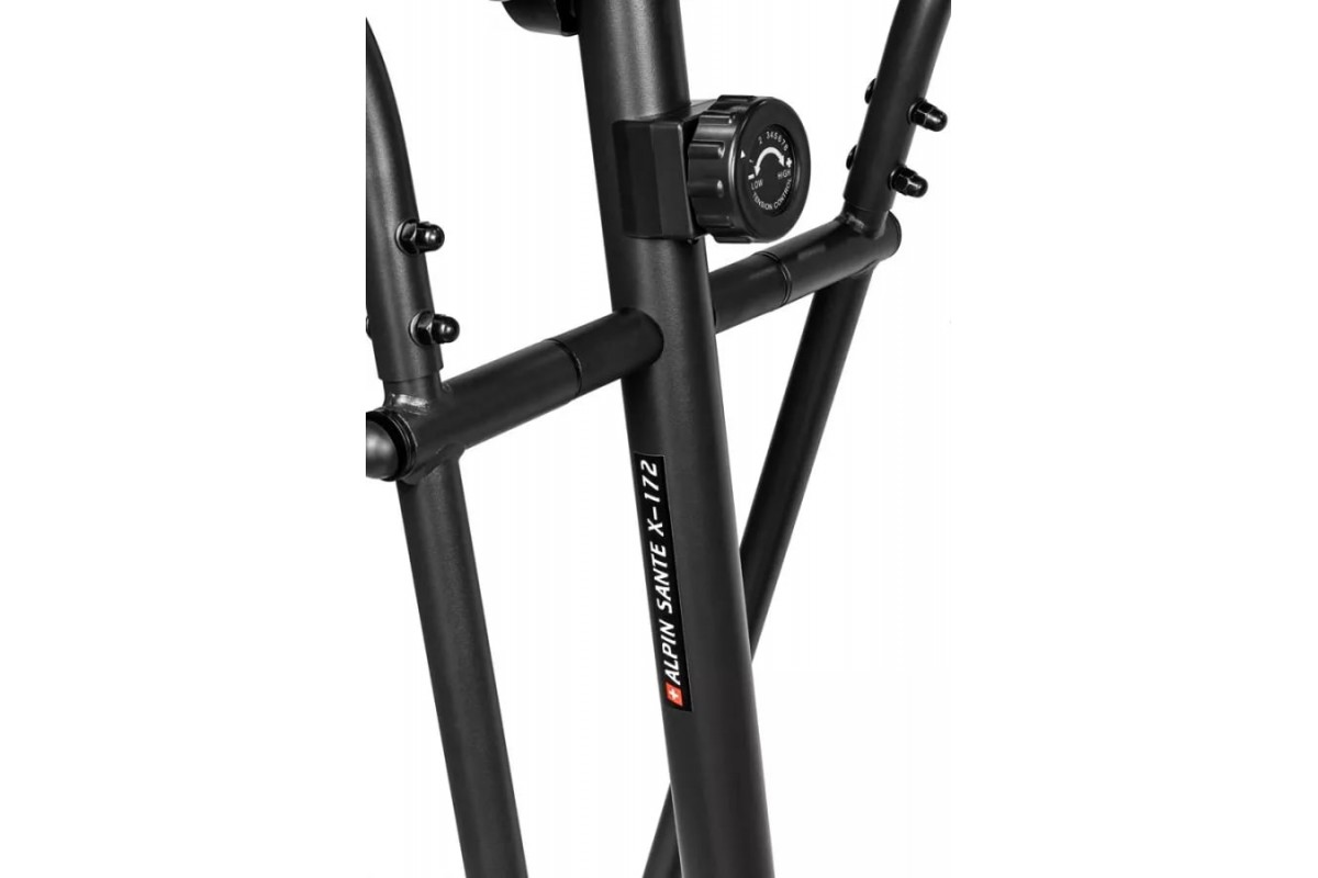 Alpin Sante X-172 с сиденьем – малогабаритный высокотехнологичный магнитный эллипсоид с задним приводом, вобравший в себя массу самых современных инноваций. Конструкция рамы построена на основе анатомических особенностей человека, которая предусматривает оптимальное положение рук, ног и торса по отношению к педалям и рукояткам. При этом система сбалансирована под пользователя ростом до 170см. Длинна шага составляет 32 см.