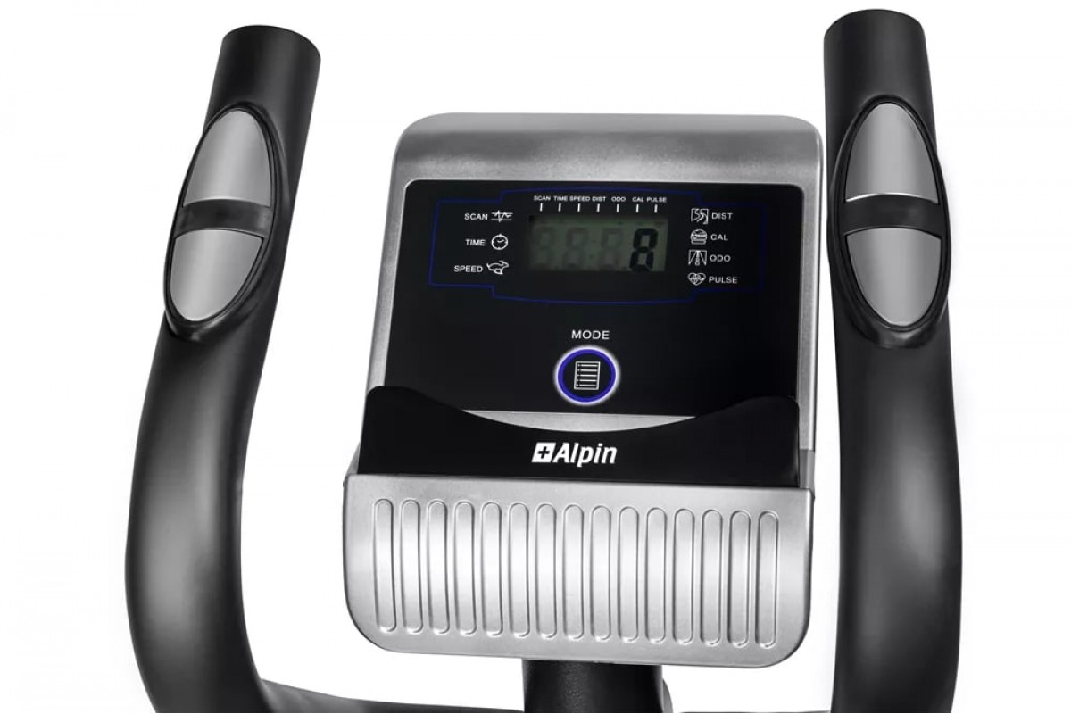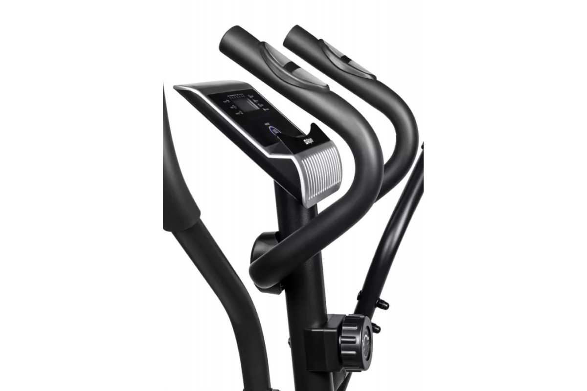 Черно-белый LCD-дисплей, с подставкой под планшет и смартфон, выводит на экран различные параметры тренировки – время, дистанцию, скорость, калории, обороты в мин., пульс.