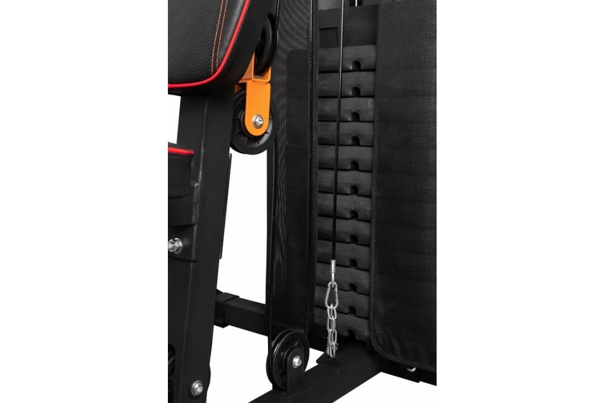 Многофункциональный силовой комплекс Alpin PRO GYM GX-750 с утяжеленным стеком обеспечивает максимум функционала и подходит спортсменам практически любого уровня подготовки. В число станций входят верхняя и нижняя и тяги, жим от груди, жим от плеч, баттерфляй, пресс/спина, бицепс/трицепс, разгибание ног и отведение/приведение ног. Малошумные весовые плиты в пластикате с совокупным весом 72 кг. обеспечивают широкий спектр нагрузок. Комфортные сиденья и спинка позволяют проводить тренировку в максимально удобном режиме. Высокопрочная рама выдерживает вес пользователя до 150 кг.